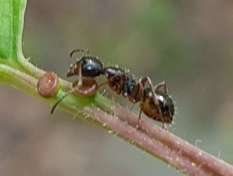 진딧물이 벚나무의 즙을 빨면