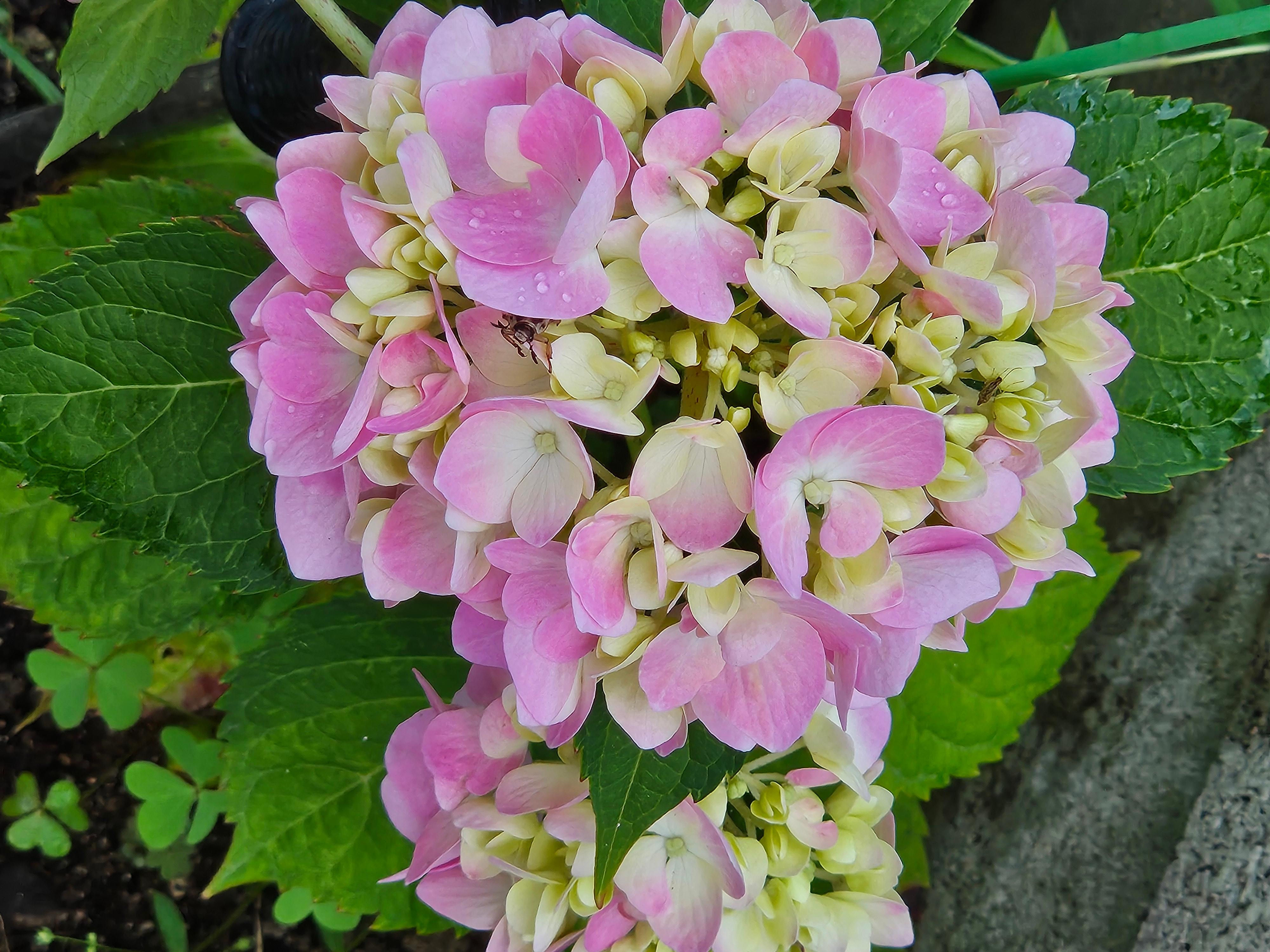 수국꽃이 물기를 머금고