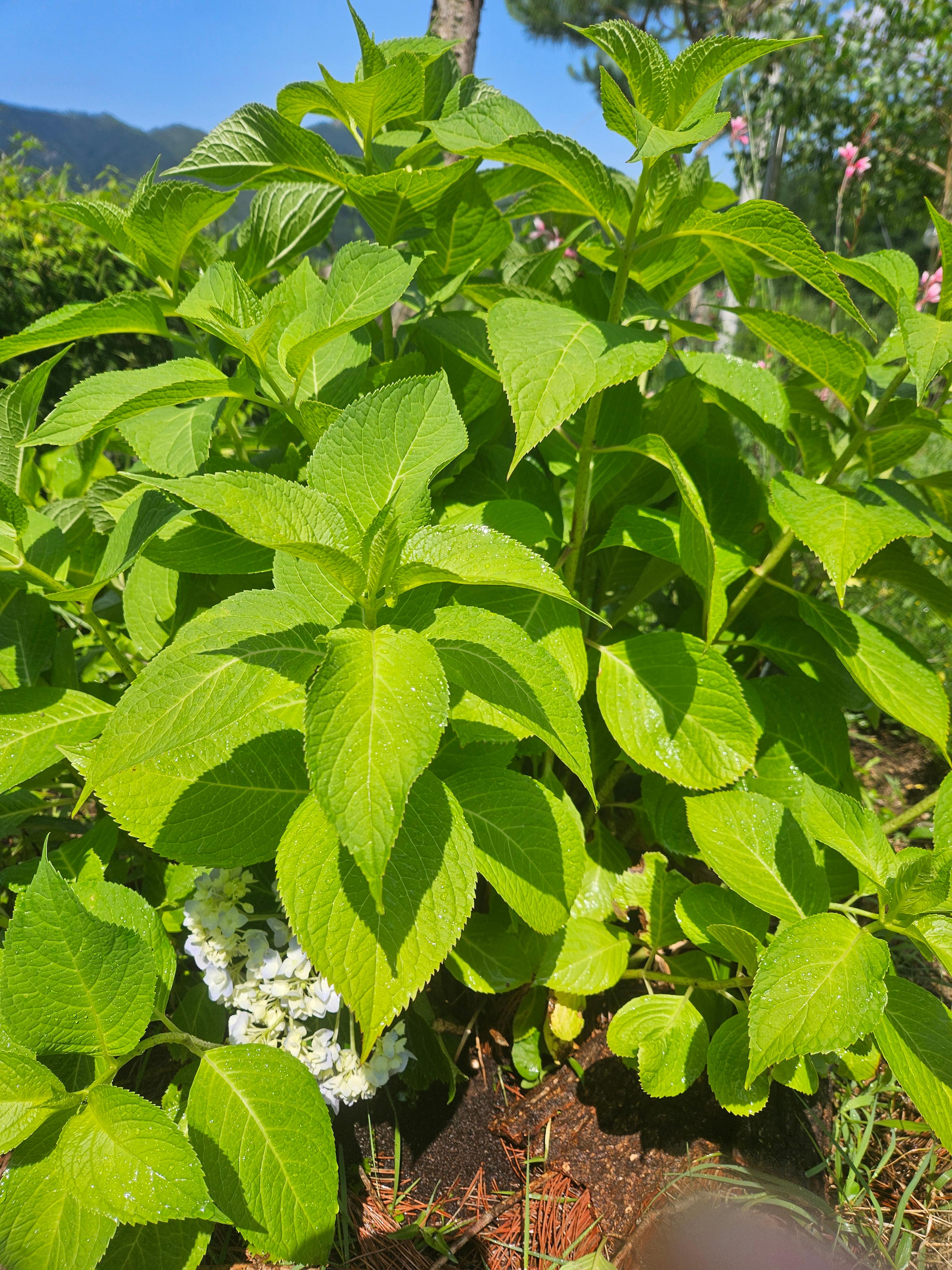이 산수국을 지금 정원에서