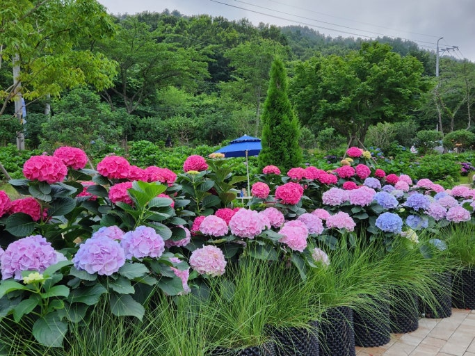 산수국을 다양한 색깔과