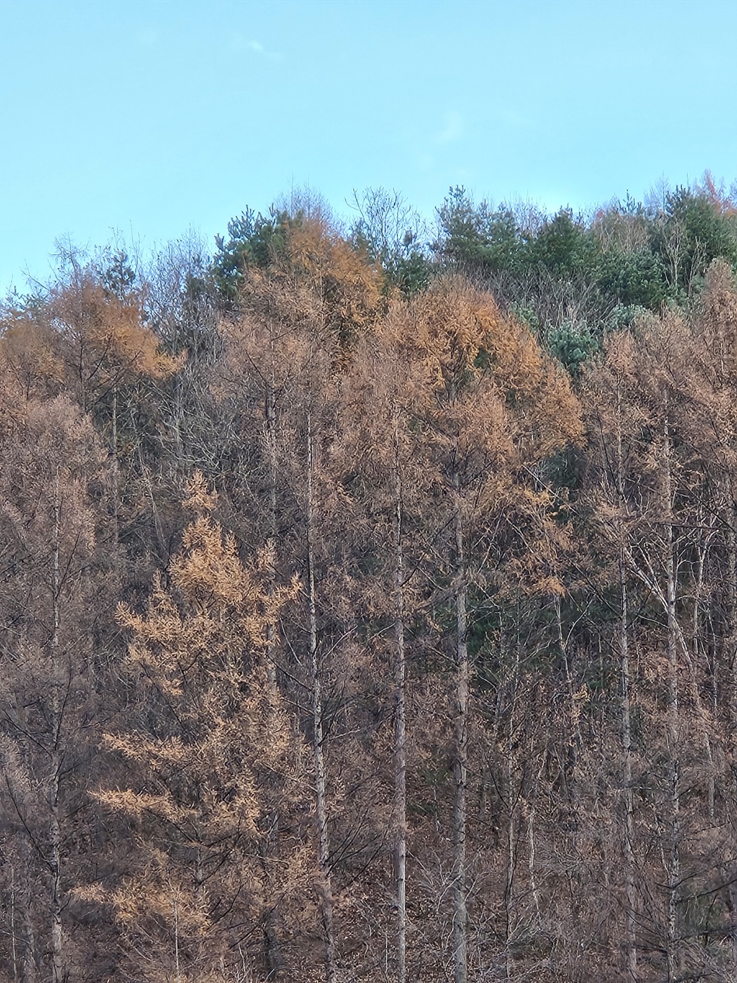 우리 산에 낙엽송이 많게 된 출발점입니다.